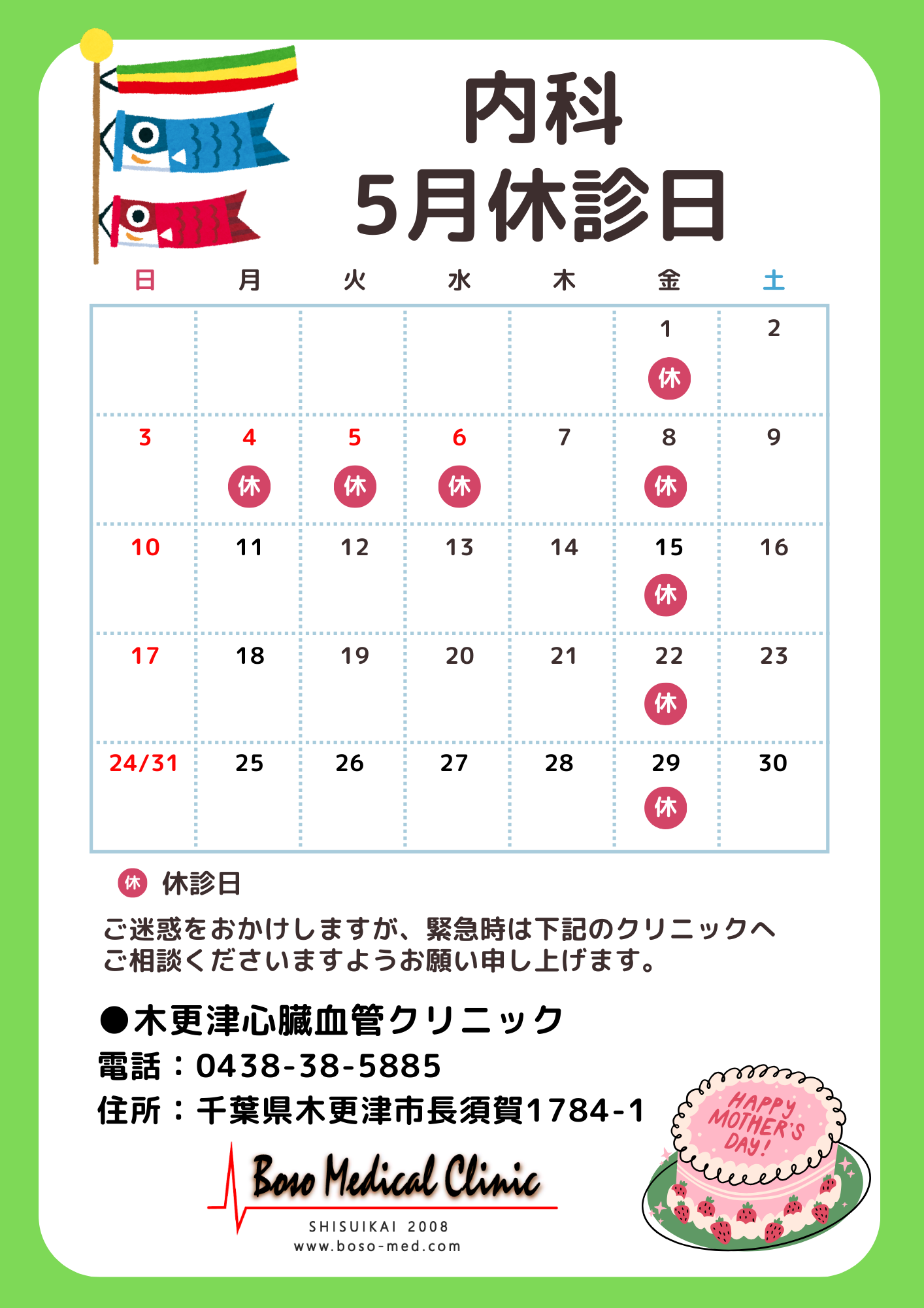 医療法人 史祥会 房総メディカルクリニック 【本院】〒292-0038 千葉県木更津市ほたる野3-24-19 【第二クリニック】〒292-0065 千葉県木更津市吾妻243-1